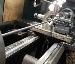 - Нарезание внутренней резьбы. Создаётся на гайках, муфтах, фитингах с помощью резцов, гребёнок и метчиков. Метчик устанавливается в предварительно просверленное отверстие детали, после чего, осуществляя вращающее движение, продвигается внутрь, нарезая резьбу.